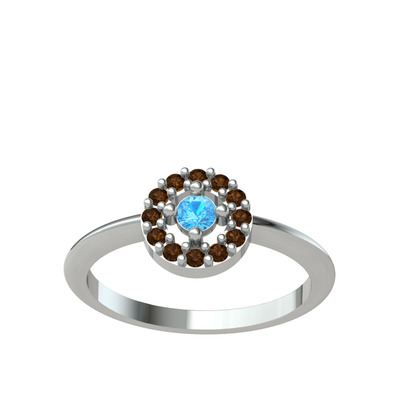 Akuamarin ve dumanlı kuvars 18 ayar beyaz altın yüzük