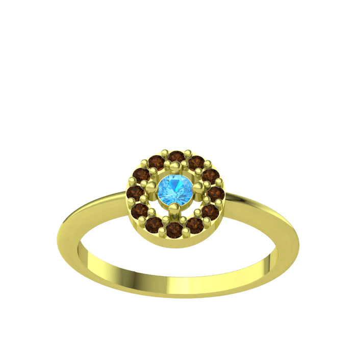 Akuamarin ve dumanlı kuvars 925 ayar altın kaplama gümüş yüzük
