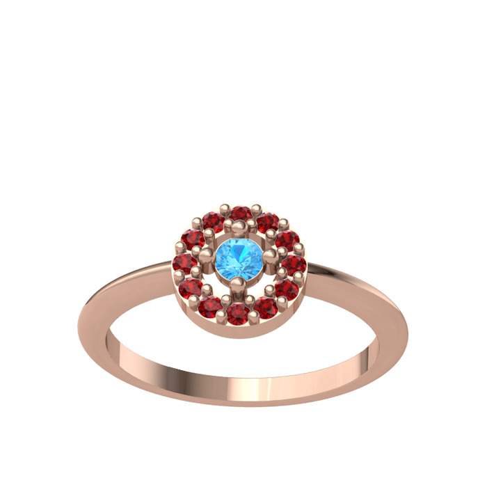 Akuamarin ve garnet 18 ayar rose altın yüzük