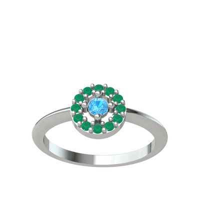 Akuamarin ve kök zümrüt 18 ayar beyaz altın yüzük