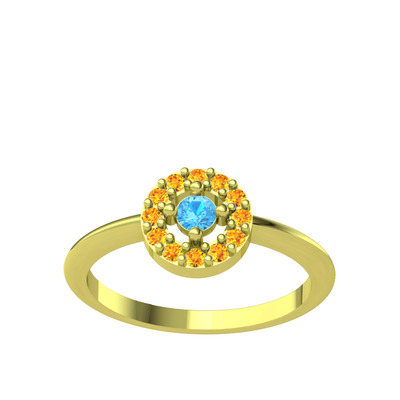 Akuamarin ve sitrin 925 ayar altın kaplama gümüş yüzük