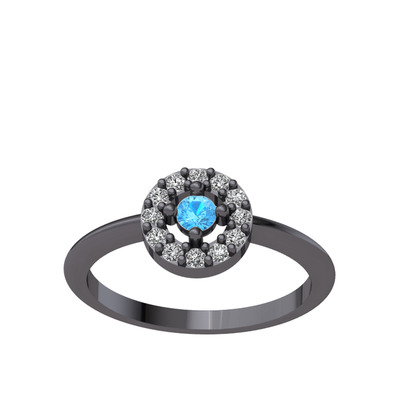 Akuamarin ve swarovski 925 ayar siyah rodyum kaplama gümüş yüzük