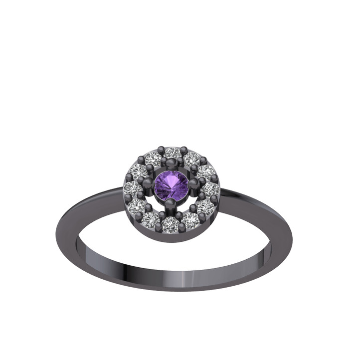 Ametist ve beyaz zirkon 925 ayar siyah rodyum kaplama gümüş yüzük