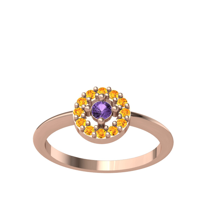 Ametist ve sitrin 925 ayar rose altın kaplama gümüş yüzük