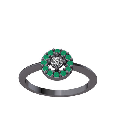 Beyaz zirkon ve kök zümrüt 925 ayar siyah rodyum kaplama gümüş yüzük