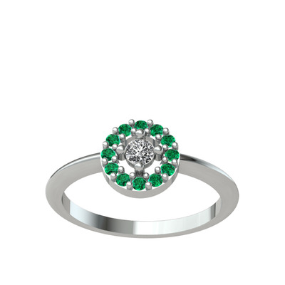 Beyaz zirkon ve yeşil kuvars 14 ayar beyaz altın yüzük