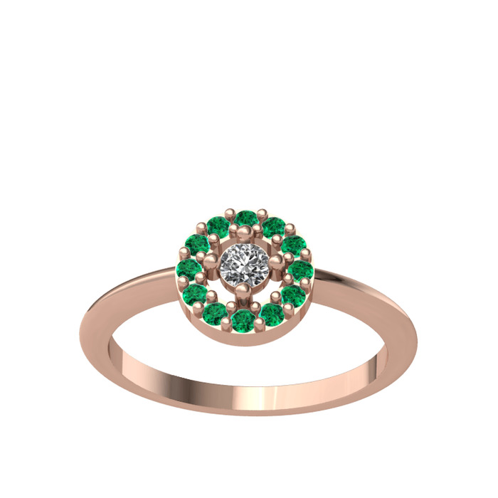 Beyaz zirkon ve yeşil kuvars 925 ayar rose altın kaplama gümüş yüzük