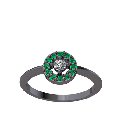 Beyaz zirkon ve yeşil kuvars 925 ayar siyah rodyum kaplama gümüş yüzük