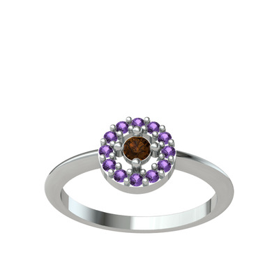 Dumanlı kuvars ve ametist 14 ayar beyaz altın yüzük