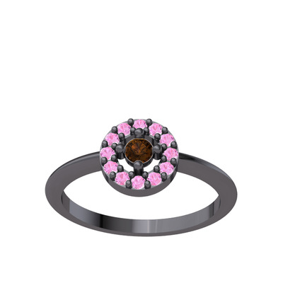 Dumanlı kuvars ve pembe kuvars 925 ayar siyah rodyum kaplama gümüş yüzük