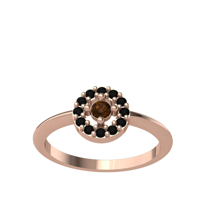 Dumanlı kuvars ve siyah zirkon 8 ayar rose altın yüzük