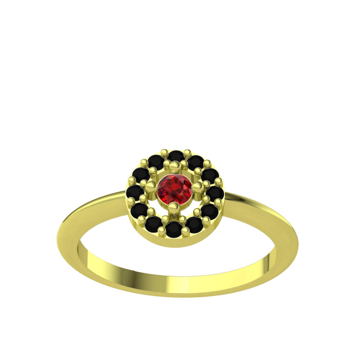 Garnet ve siyah zirkon 925 ayar altın kaplama gümüş yüzük