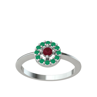 Kök yakut ve kök zümrüt 18 ayar beyaz altın yüzük