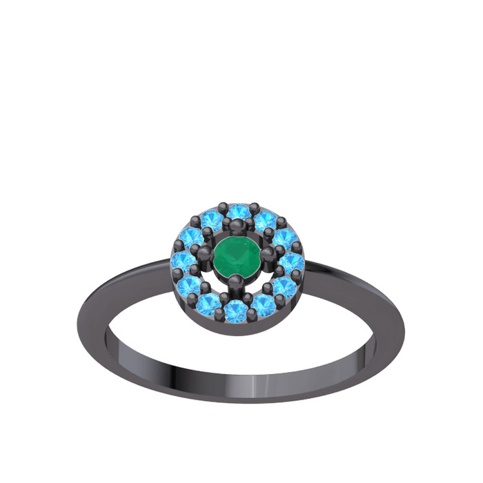 Kök zümrüt ve akuamarin 925 ayar siyah rodyum kaplama gümüş yüzük