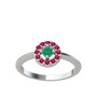 Kök zümrüt ve rodolit garnet 8 ayar beyaz altın yüzük