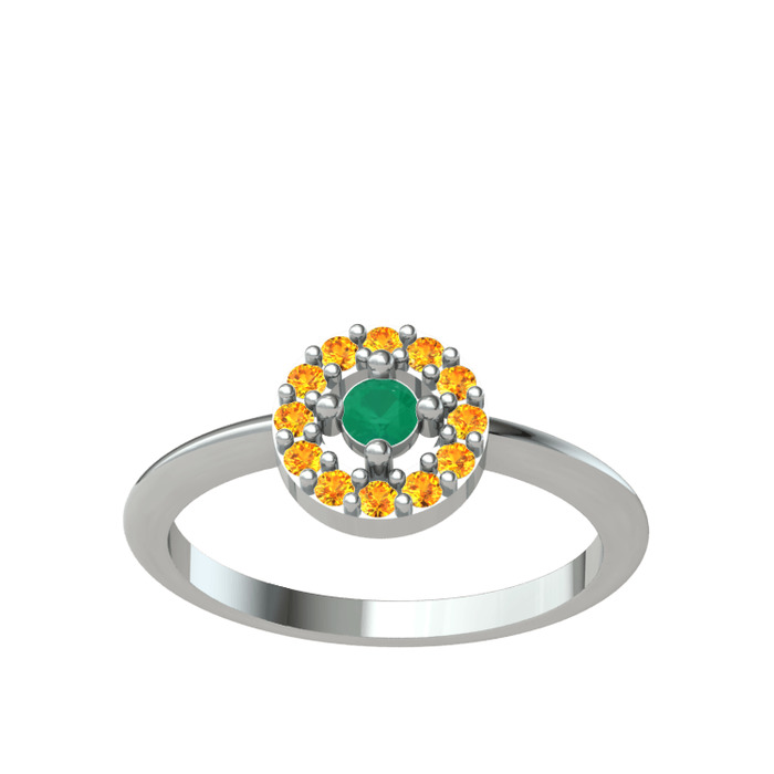 Kök zümrüt ve sitrin 18 ayar beyaz altın yüzük