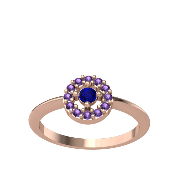 Lab safir ve ametist 14 ayar rose altın yüzük