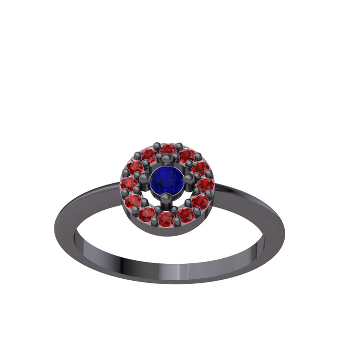 Lab safir ve garnet 925 ayar siyah rodyum kaplama gümüş yüzük