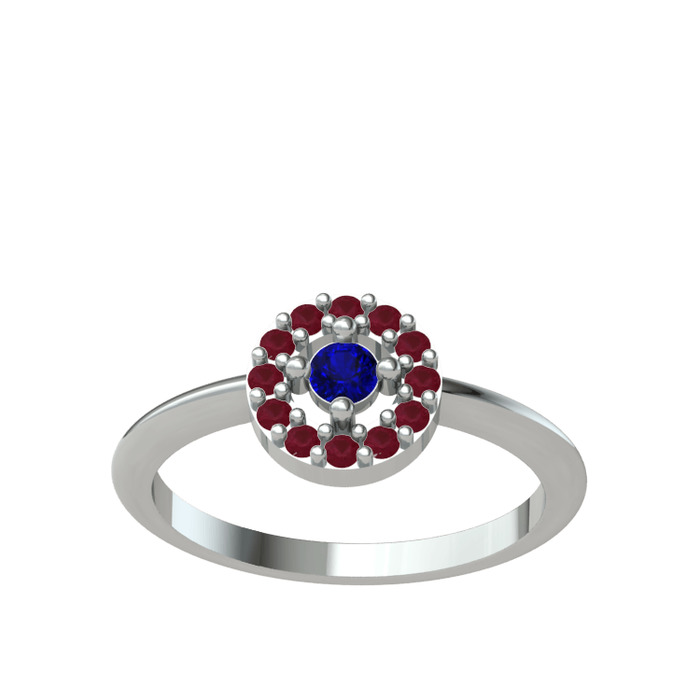 Lab safir ve kök yakut 8 ayar beyaz altın yüzük