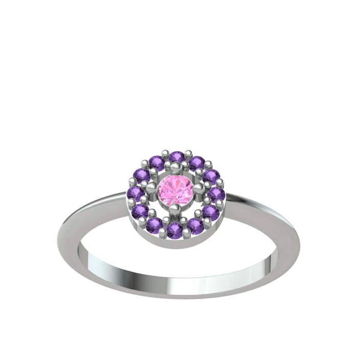 Pembe kuvars ve ametist 8 ayar beyaz altın yüzük