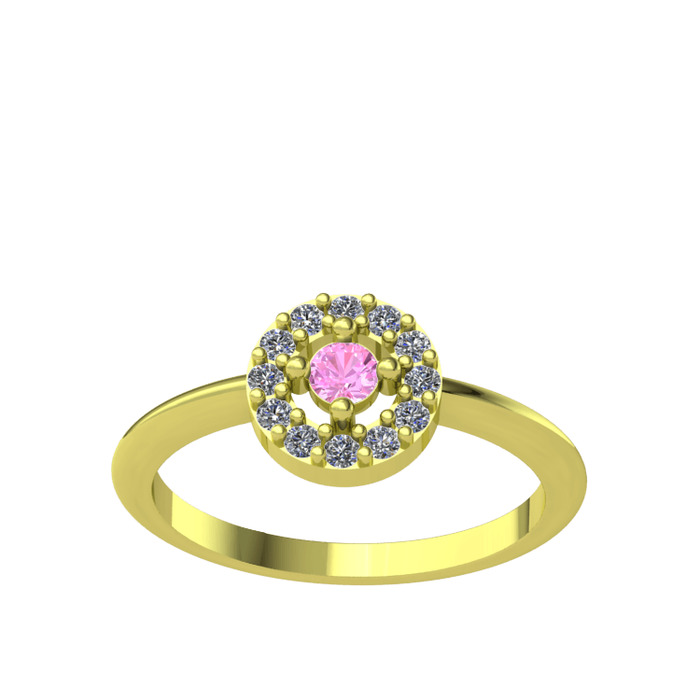 Pembe kuvars ve pırlanta 18 ayar altın yüzük (0.132 karat)