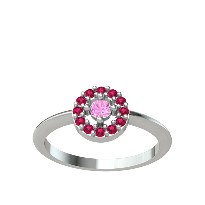 Pembe kuvars ve rodolit garnet 14 ayar beyaz altın yüzük