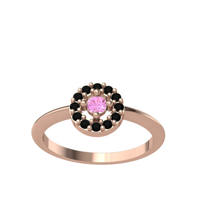 Pembe kuvars ve siyah zirkon 14 ayar rose altın yüzük