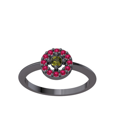 Peridot ve rodolit garnet 925 ayar siyah rodyum kaplama gümüş yüzük