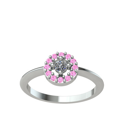 Pırlanta ve pembe kuvars 925 ayar gümüş yüzük (0.06 karat)