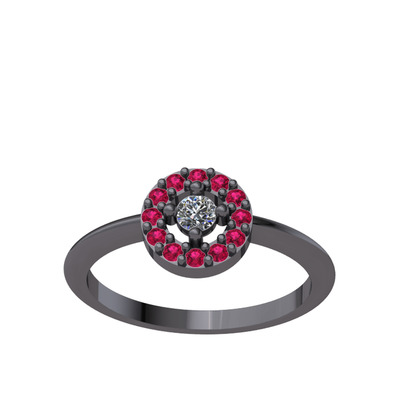 Pırlanta ve rodolit garnet 925 ayar siyah rodyum kaplama gümüş yüzük (0.06 karat)