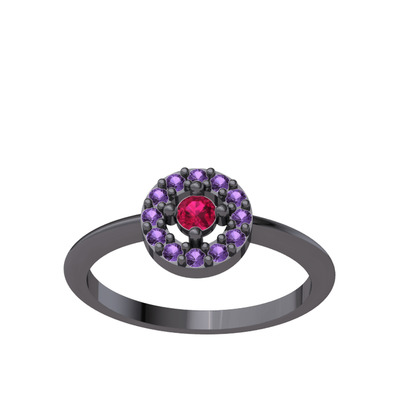 Rodolit garnet ve ametist 925 ayar siyah rodyum kaplama gümüş yüzük