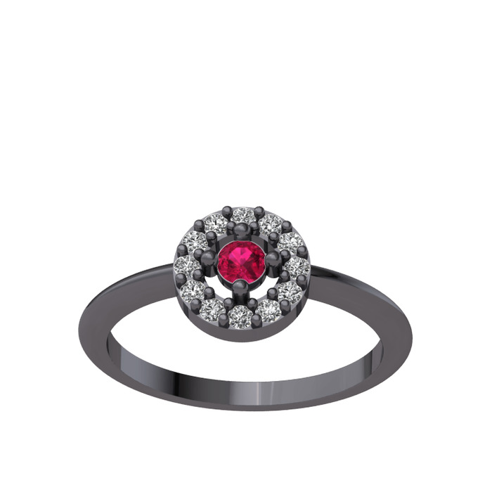 Rodolit garnet ve beyaz zirkon 925 ayar siyah rodyum kaplama gümüş yüzük
