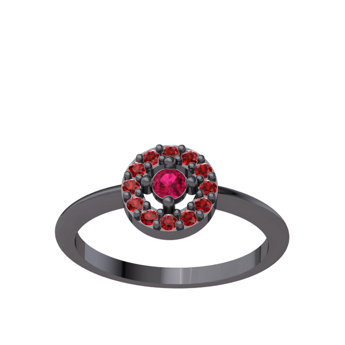 Rodolit garnet ve garnet 925 ayar siyah rodyum kaplama gümüş yüzük