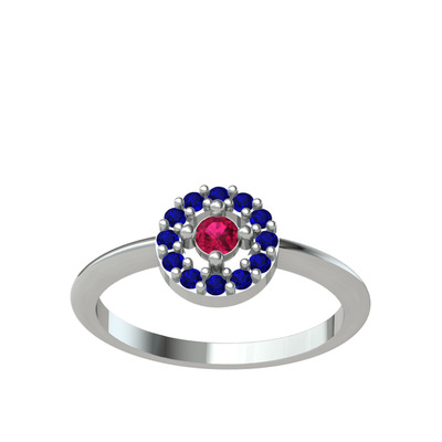 Rodolit garnet ve lab safir 8 ayar beyaz altın yüzük