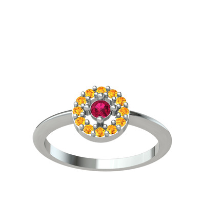 Rodolit garnet ve sitrin 18 ayar beyaz altın yüzük
