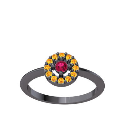 Rodolit garnet ve sitrin 925 ayar siyah rodyum kaplama gümüş yüzük