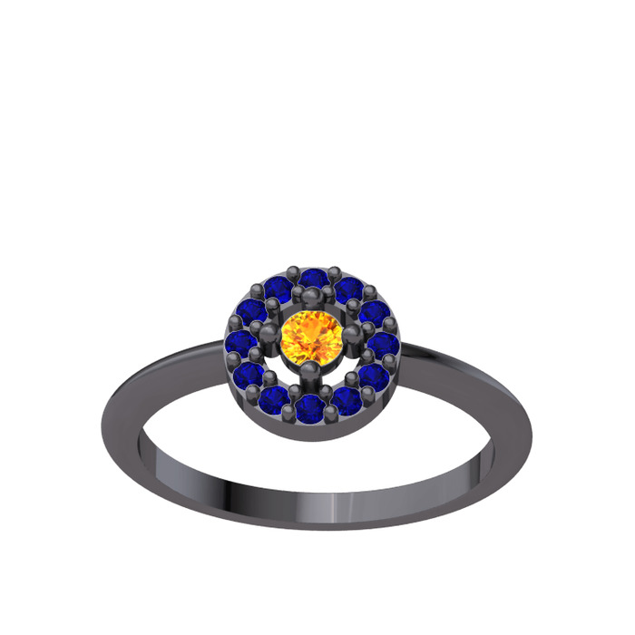 Sitrin ve lab safir 925 ayar siyah rodyum kaplama gümüş yüzük