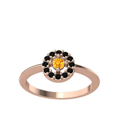 Sitrin ve siyah zirkon 14 ayar rose altın yüzük