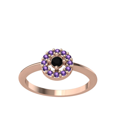 Siyah zirkon ve ametist 14 ayar rose altın yüzük
