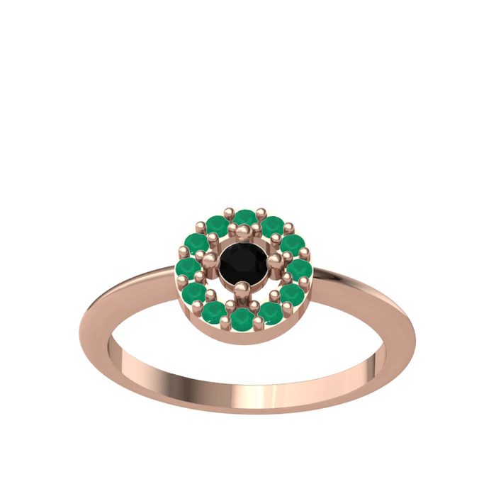 Siyah zirkon ve kök zümrüt 925 ayar rose altın kaplama gümüş yüzük