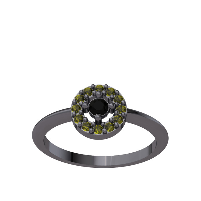 Siyah zirkon ve peridot 925 ayar siyah rodyum kaplama gümüş yüzük
