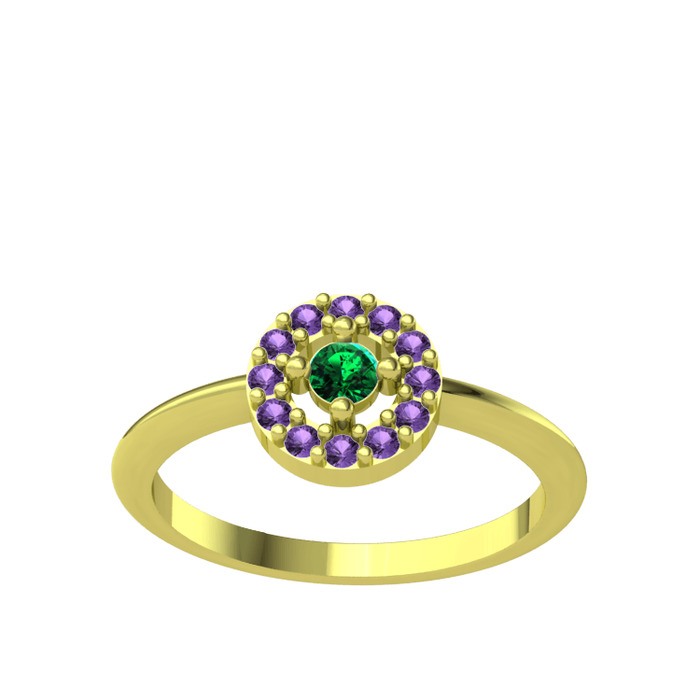Yeşil kuvars ve ametist 925 ayar altın kaplama gümüş yüzük