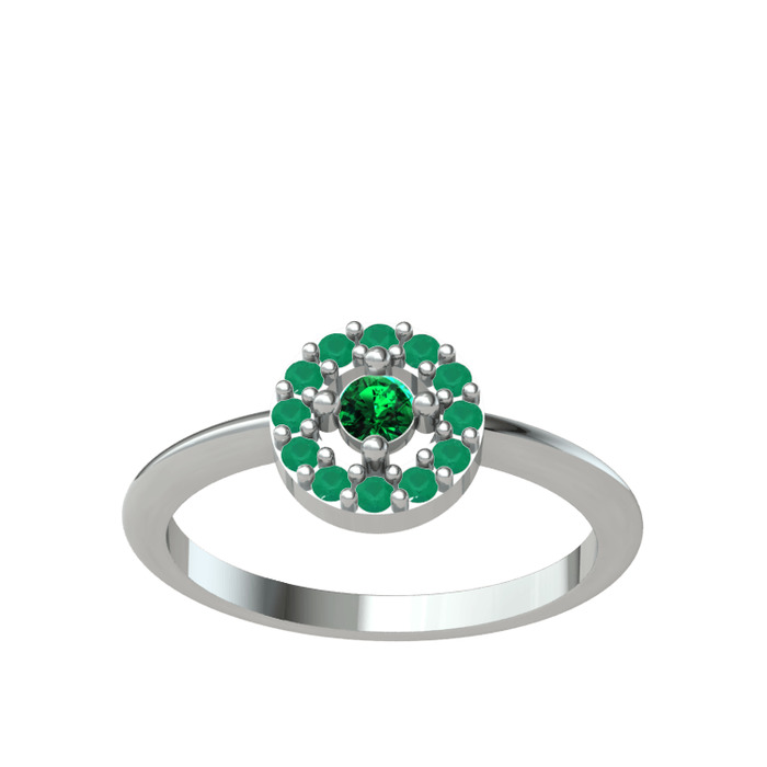 Yeşil kuvars ve kök zümrüt 8 ayar beyaz altın yüzük