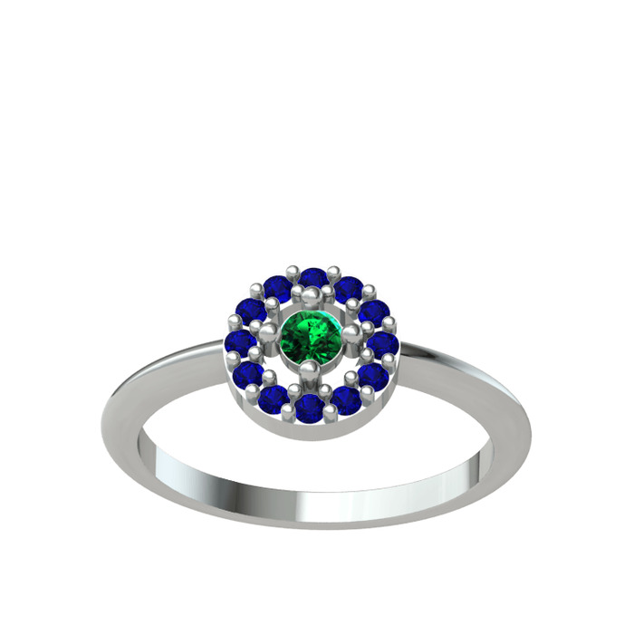 Yeşil kuvars ve lab safir 8 ayar beyaz altın yüzük