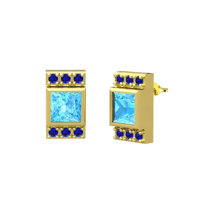 Akuamarin ve lab safir 925 ayar altın kaplama gümüş küpe