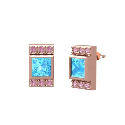 Akuamarin ve pembe kuvars 8 ayar rose altın küpe