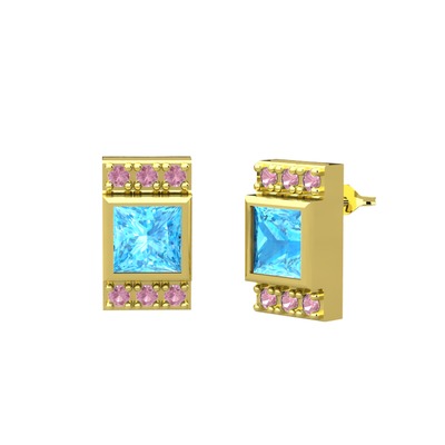 Akuamarin ve pembe kuvars 925 ayar altın kaplama gümüş küpe