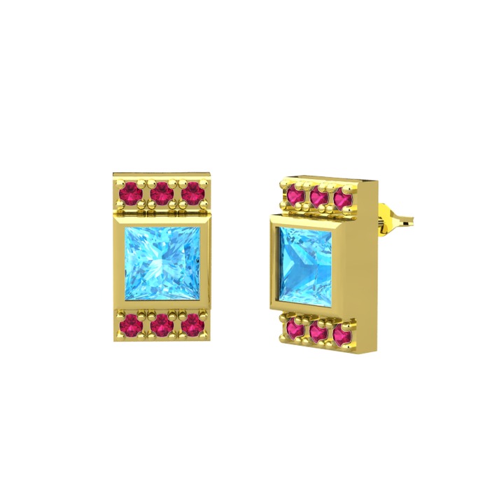 Akuamarin ve rodolit garnet 14 ayar altın küpe