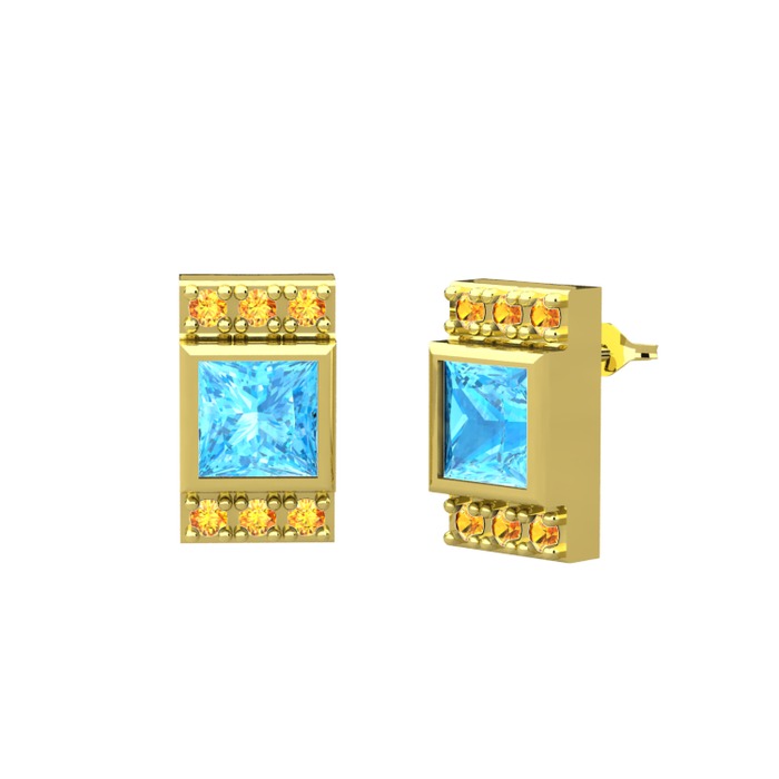 Akuamarin ve sitrin 14 ayar altın küpe