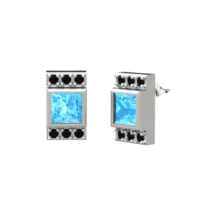 Akuamarin ve siyah zirkon 18 ayar beyaz altın küpe